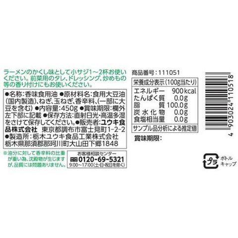 | 食用大豆油(国内製造)、ねぎ、玉ねぎ、香辛料、(一部に大豆を含む) |