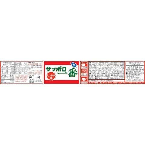 | 油揚げめん(小麦粉(国内製造)、植物油脂、食塩、油脂加工品、砂糖、粉末卵)、スープ(糖類、食塩、香辛料、しょうゆ、油脂加工品、小麦粉、チキンエキス、チキン調味料、たん白加水分解物、発酵調味料、植物油脂、野菜エキス)、かやく(味付豚肉、ナルト、ねぎ)/加工でん粉、調味料(アミノ酸等)、カラメル色素、炭酸カルシウム、かんすい、クチナシ色素、香料、酸味料、酸化防止剤(ビタミンE)、乳化剤、ビタミンB2、ビタミンB1、ベニコウジ色素、(一部に小麦・卵・乳成分・ごま・大豆・鶏肉・豚肉を含む) |