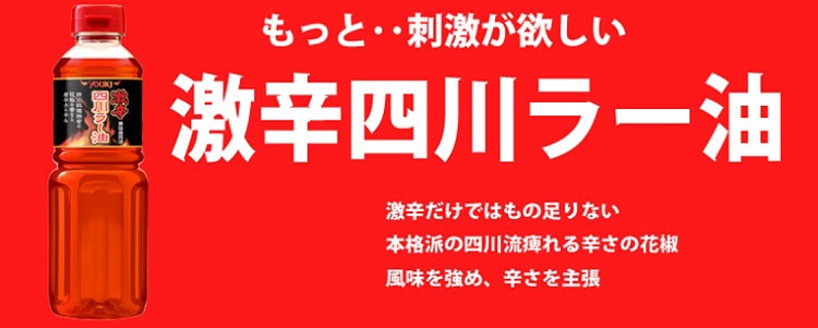 ●料理を激辛の本格四川風に仕上げたい時、料理の風味を強めるためにもう一味欲しい時、最後の一振りが決め手になる激辛のラー油です。