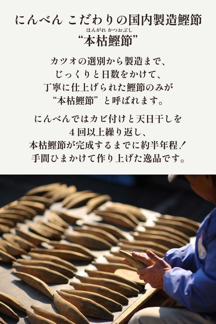 ●熟練の技と伝統製法で丁寧に作られた、すっきりとした上品でまろやかな味と香りが特徴の本枯鰹節を使用し、