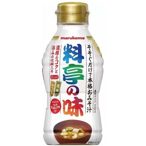 ●液みそ 料亭の味:「料亭の味」の特徴である風味豊かな赤系みそをベースに、良質のかつおだし、昆布だしをきかせた液みそ。