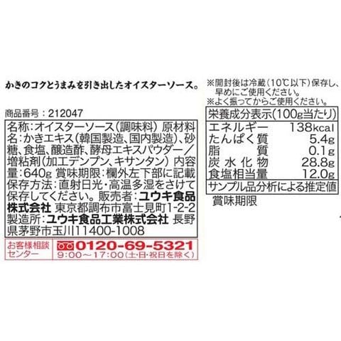 ユウキ食品 オイスターソース (640g×3セット)