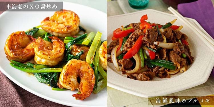 | XOベース(なたね油、にんにく、エシャロット、干し貝柱、砂糖、唐辛子、えび、その他)(台湾製造)、砂糖、ブランデー、ソテーオニオンペースト、沙茶醤(大豆油、干しえび、干し魚、その他)、にんにくペースト、煮干貝柱粉末、ホタテエキスパウダー、豆板醤、生姜ペースト、酵母エキス、食塩、干しえび粉末、(一部にえび・大豆を含む) |