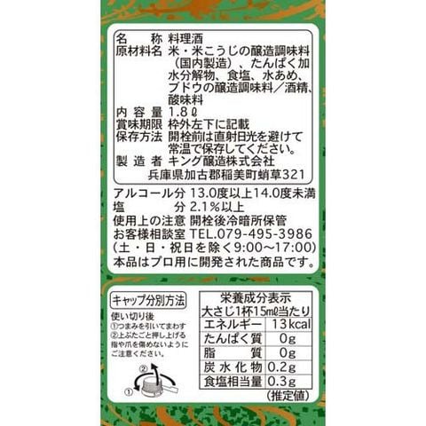 ●清酒の調味料としての働きを追求し、コクや旨み効果を高めた料理酒(加塩)です。