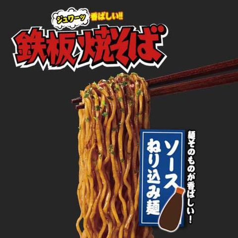 ●鉄板で焼いたような、ジュワーッと香ばしい焼そば!香ばしさを強化。かつおの旨みとソースのコクを活かしながら、奥深い味わいに仕上げた一品です。