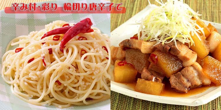 ●鮮やかな赤い色合いで辛味の強い唐辛子を丸ごと乾燥させ、輪切りにしました。