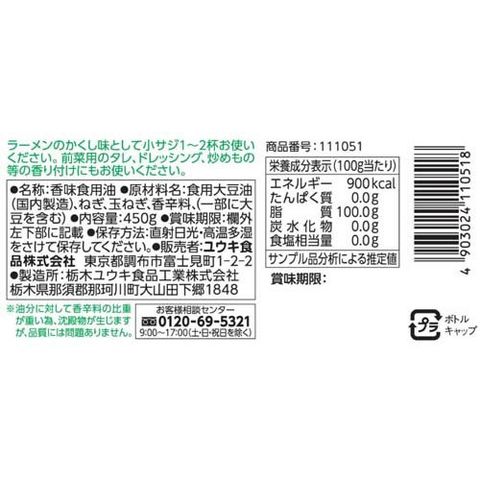 前菜用のタレ、ドレッシング、炒め物等の香り付けの他、ラーメンのかくし味としてもお使いください。