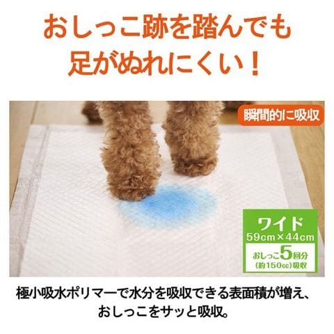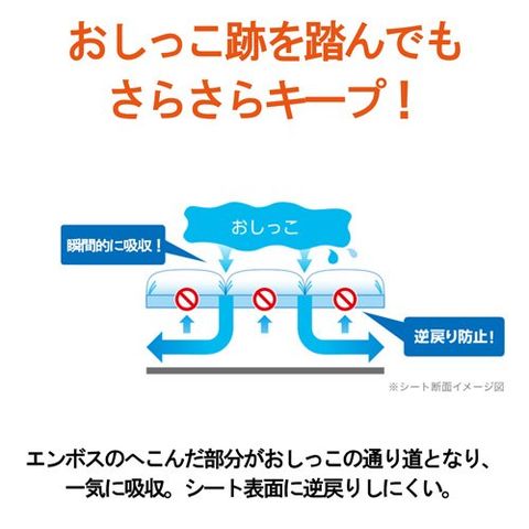 ●おしっこ跡を踏んでもさらさらキープ!おしっこをたっぷり吸収するから、おしっこ跡を踏んでも安心、足裏がぬれにくい!