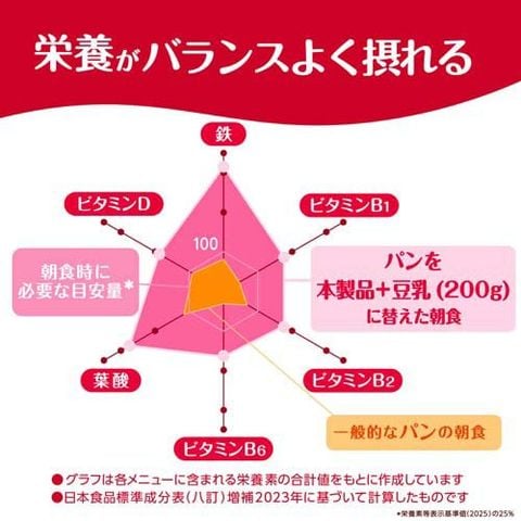 エネルギー:152kcal、たんぱく質:2.9g、脂質:0.9g、炭水化物:34.1g、食塩相当量:0.4g、コレステロール:0mg、糖質:31.9g、食物繊維:2.2g、鉄:1.8mg、ビタミンB1:0.31mg、ビタミンB2:0.37mg、ビタミンB6:0.34mg、ビタミンD:2.26μg、葉酸:63μg