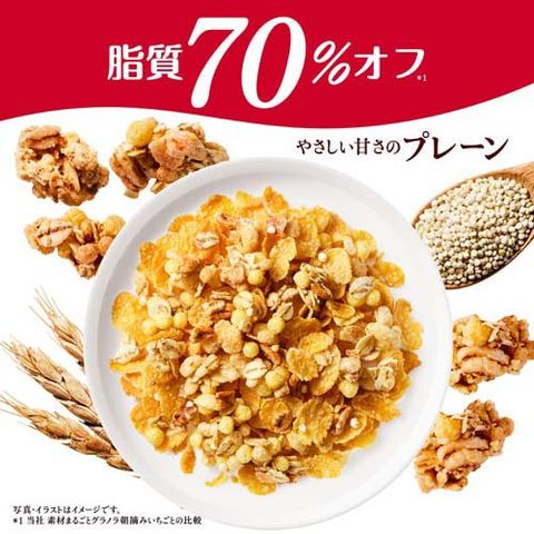●脂質を70%カット※1し、一切、味に妥協せず、美味しさを追求したグラノラに、スーパーフードのキヌアとスペルト小麦をプラスしたグラノラ。