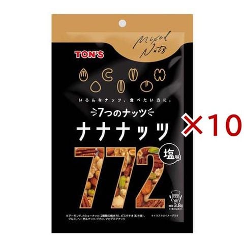 | カシューナッツ(インド)、アーモンド、クルミ、ピカン、マカデミアナッツ、ヘーゼルナッツ、ピスタチオ、植物油脂、食塩 |
