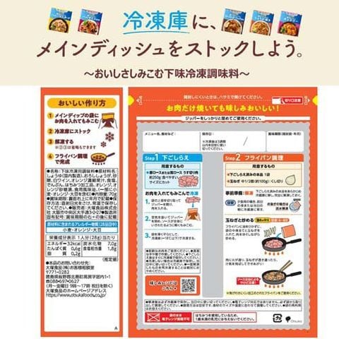 ●献立をストックする、お肉専用下味冷凍調味料。隠し味のオレンジがほんのり香る醤油味で、豚ロース肉と玉ねぎにおすすめです。
