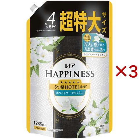 レノア ハピネス 柔軟剤 5つ星HOTEL推奨 ホワイトブーケ&リネンの香り 詰替 超特大 (1285ml×3セット)