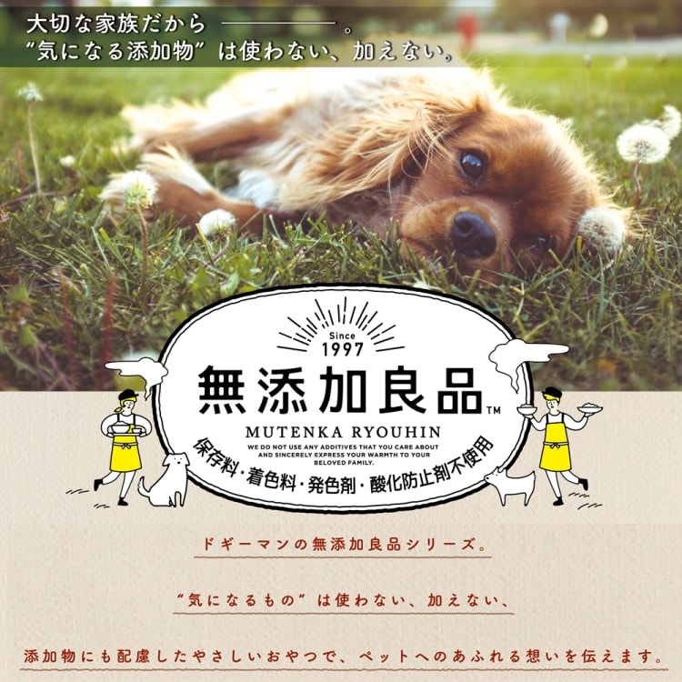 ・犬の習性や性格、食べ方によっては、のどに詰まらせたりする恐れがありますので、適切な大きさにして与えてください。