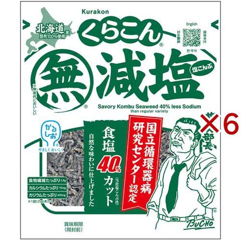 ●くらこん「塩こんぶ」に対して40%減塩しており、お子様から体に気を使いたい方まで幅広く安心して召しあがれる商品です。