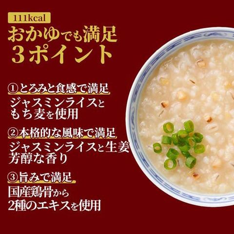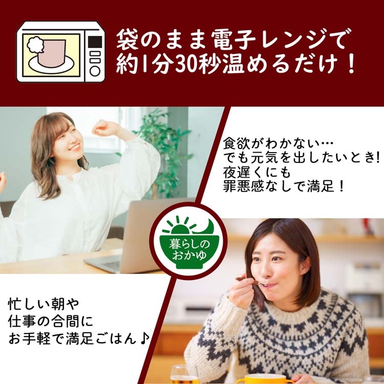 ●朝にもぴったりなやさしい味わいで、時間がない時や食欲がない時でも電子レンジで簡単!一食完結型のおかゆです。