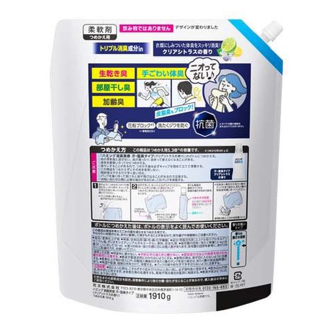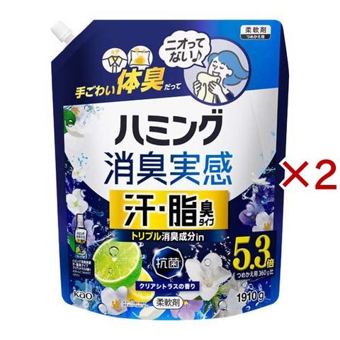 ハミング消臭実感 汗・脂臭タイプ クリアシトラスの香り つめかえ用 (1910g×2セット)