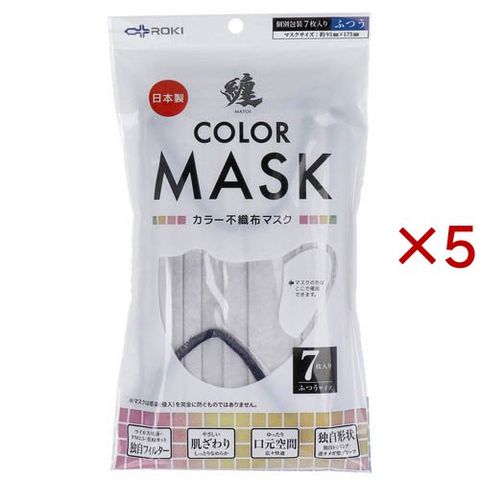 纏(MATOI) カラー不織布マスク ふつうサイズ シルバーグレイ×ネイビー (7枚入×5セット)