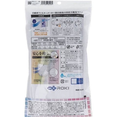 | 個装重量:約37g 内容量:7枚入 素材:本体(ポリプロピレン)、フィルター部(ポリプロピレン)、耳ひも部(ポリエステル・ポリウレタン)、ノーズフィッター(アルミニウム) サイズ:ふつうサイズ:約95mm×約175mm |