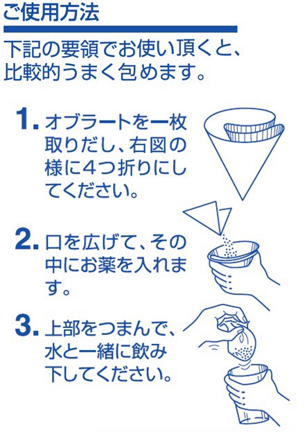 ●にがい粉薬をしっかり包みます。