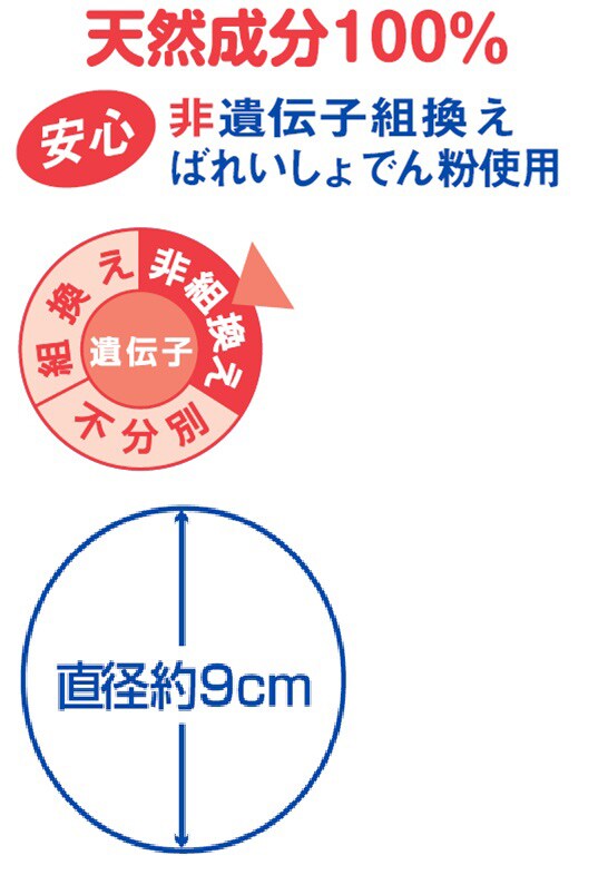 ●天然成分100%非遺伝子組換えばれいしょでん粉使用