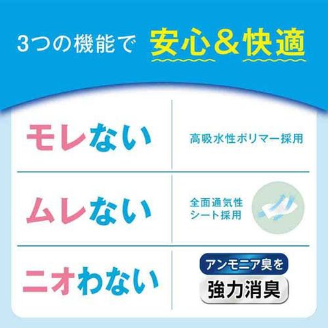 | 素材 表面材:ポリオレフィン系不織布 吸水材:綿状パルプ/吸収紙/アクリル系高分子吸水材 防水材:ポリオレフィン系フィルム 伸縮材:ポリウレタン 結合材:スチレン系エラストマー合成樹脂など |