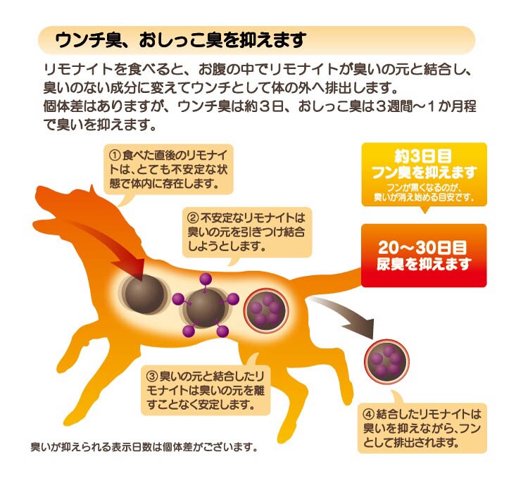 ●フン臭は3日程度、尿臭は3週間~1カ月で軽減をサポートします。(個体差はあります)