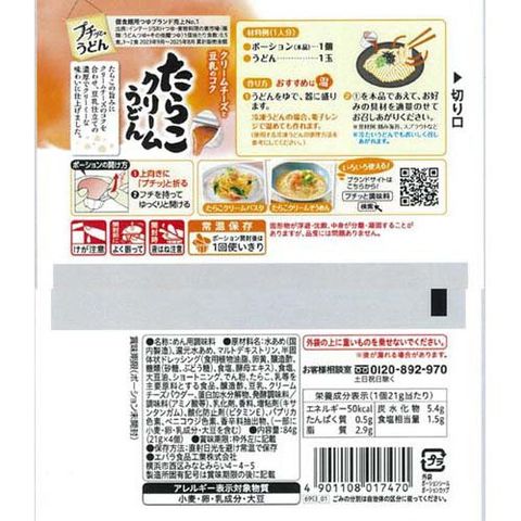 【プチッとうどん たらこクリームうどんの商品詳細】