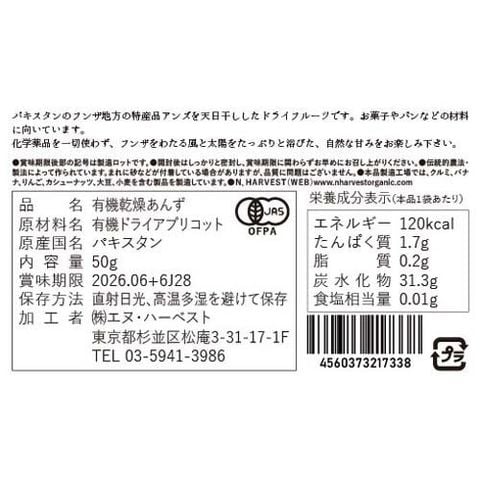 オーガニックフンザドライアプリコット (50g×2セット)
