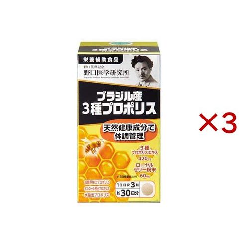野口医学研究所 ブラジル産3種プロポリス サプリ (90粒入×3セット)
