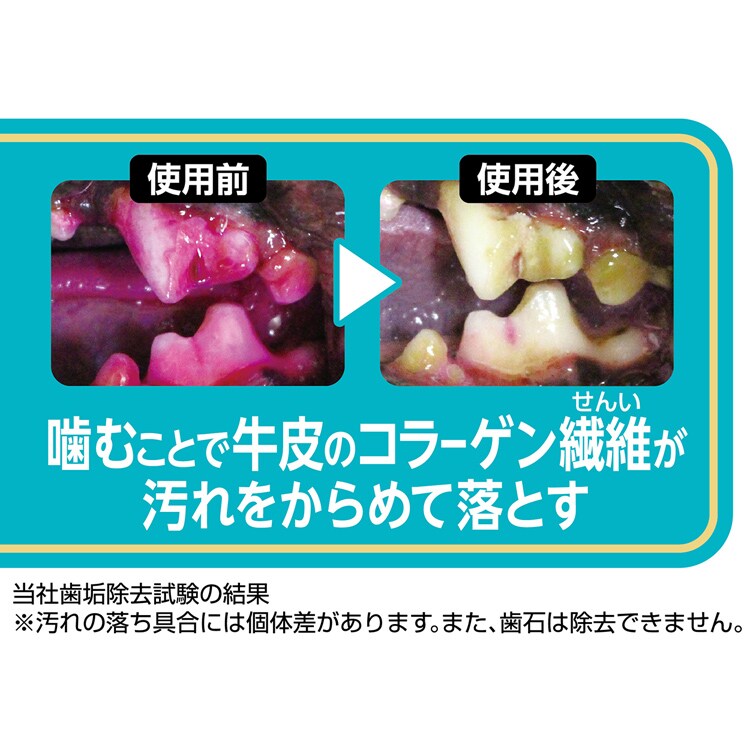 ●噛むことで牛皮のコラーゲン繊維が汚れをからめて落とします。