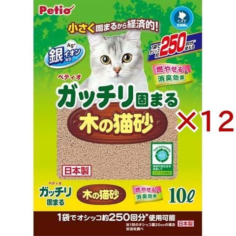ペティオ ガッチリ固まる木の猫砂 (10L×12セット)