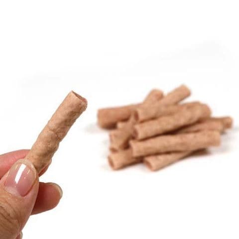●適度な長さ、さらにちぎれるやわらかさ。与える量の調整もしやすい。