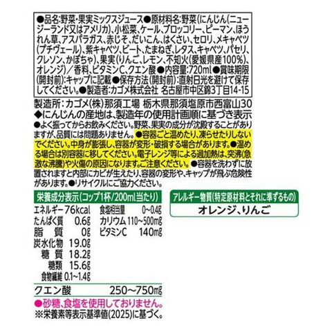野菜(にんじん(ニュージーランド又はアメリカ)、小松菜、ケール、ブロッコリー、ピーマン、ほうれん草、アスパラガス、赤じそ、だいこん、はくさい、セロリ、メキャベツ(プチヴェール)、紫キャベツ、ビート、たまねぎ、レタス、キャベツ、パセリ、クレソン、かぼちゃ)、果実(りんご、レモン、不知火(愛媛県産100%)、オレンジ)/香料、ビタミンC、クエン酸