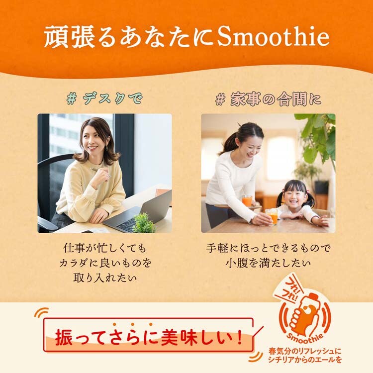 ●シチリア産オレンジの爽やかな酸味と甘みのバランスがよく、柑橘ベルガモットのフローラルな香りをほのかに感じる野菜と果実のスムージー。