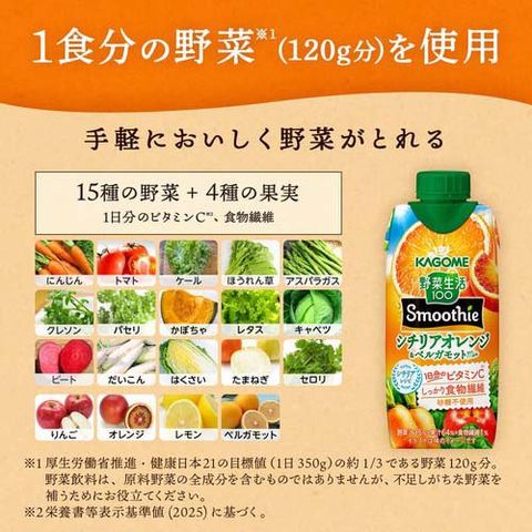 【カゴメ 野菜生活100 Smoothie シチリアオレンジ&ベルガモットmixの商品詳細】