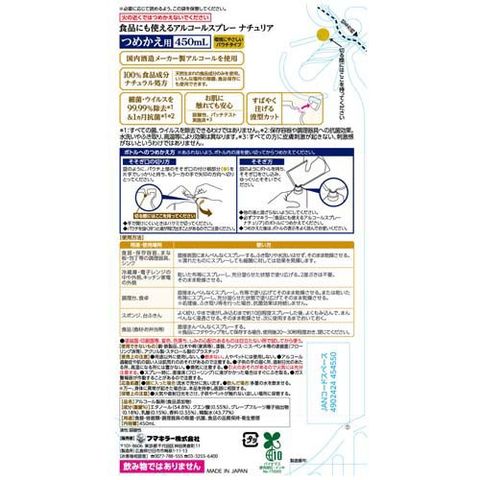 食品にも使えるアルコールスプレーナチュリアつめかえ用 (450ml×2セット)