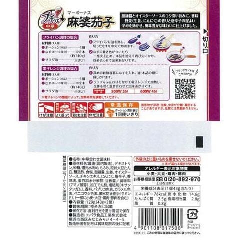 | 醤油(国内製造)、デキストリン、砂糖、還元水あめ、もろみ、粒状大豆たん白、醸造酢、食塩、甜麺醤、生姜、オイスターソース、チキンエキス、にんにく、唐辛子、香味油、蛋白加水分解物、豆板醤/調味料(アミノ酸等)、加工でん粉、増粘剤(キサンタンガム)、香料、パプリカ色素、カラメル色素、ベニコウジ色素、酸化防止剤(ビタミンE)、(一部に小麦・大豆・鶏肉・豚肉を含む) |