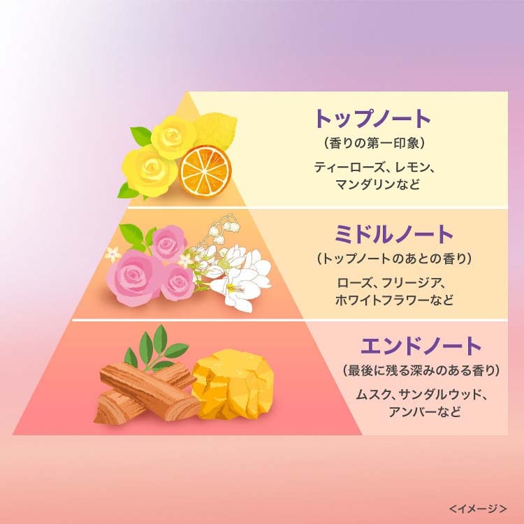 ●夕暮れ時の風にふかれたブーケをイメージした上品な香り。