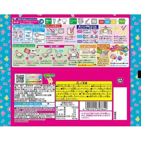 | ぶどう糖(国内製造)、砂糖、でん粉、デキストリン、卵白粉末/加工デンプン、酸味料、乳酸カルシウム、香料、ゲル化剤(アルギン酸ナトリウム)、着色料(野菜色素、スピルリナ青、クチナシ)、乳化剤、重曹、(一部に卵を含む) |