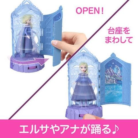 ●こおりをモチーフにしたダンスホールにドールを設置してドアを開け閉めすると、中でエルサやアナがかわいくダンスします。