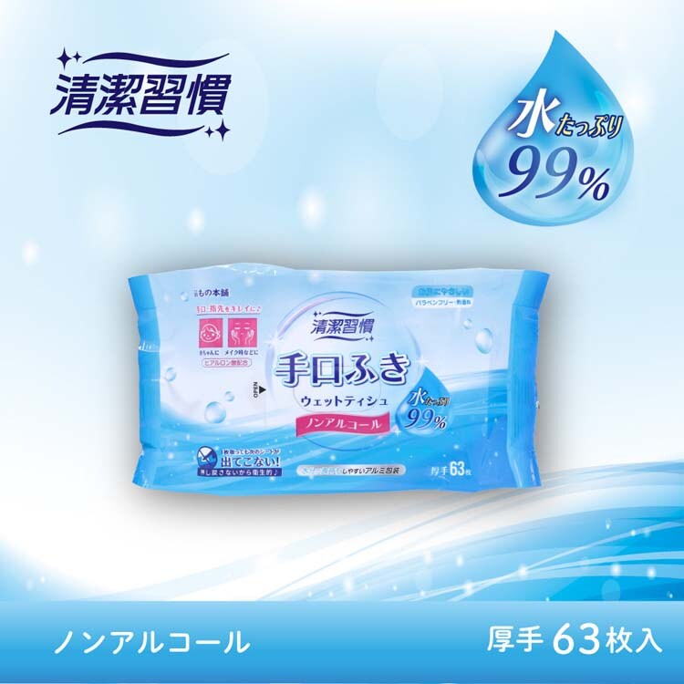 清潔習慣 手口ふき ウェットティシュ 厚手 (63枚入×15セット)