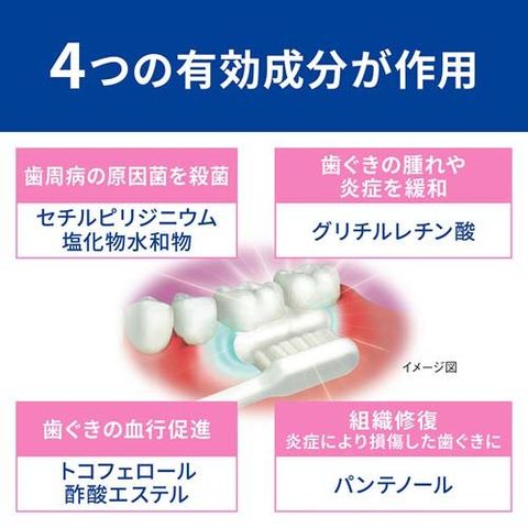 ●4つの有効成分が歯ぐきの発赤・腫れ・うみ、口臭といった歯肉炎・歯槽膿漏の諸症状を緩和。