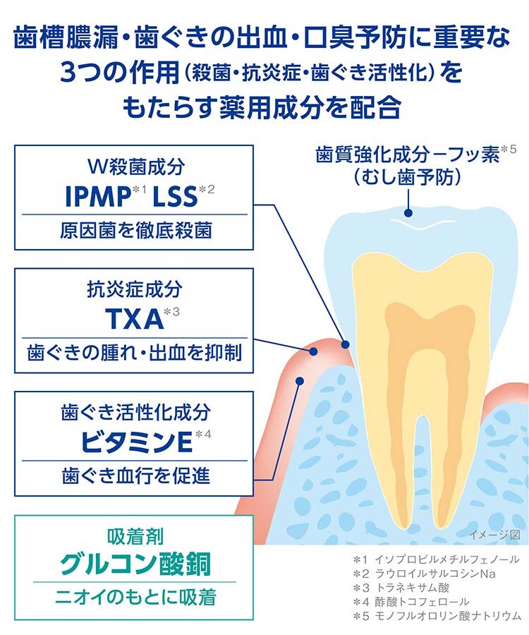 ●歯槽膿漏、歯ぐきの出血、口臭をトータルケアするプレミアム処方
