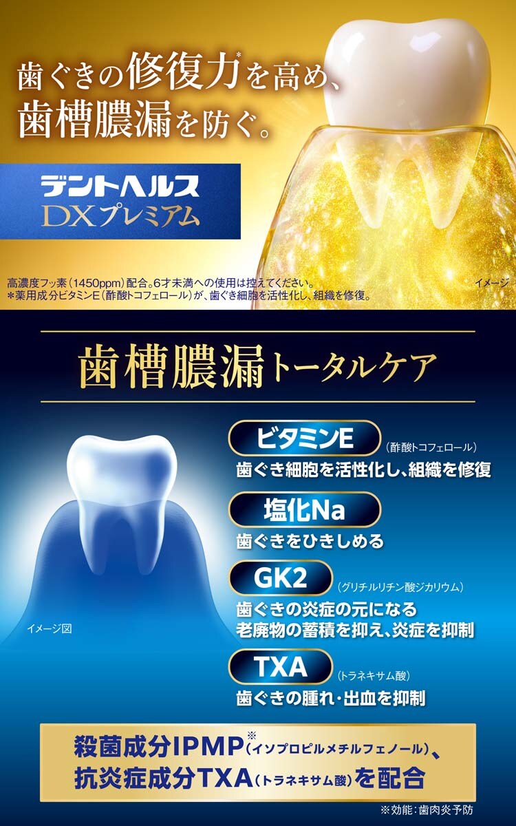 【デントヘルス薬用ハミガキDXプレミアムの商品詳細】