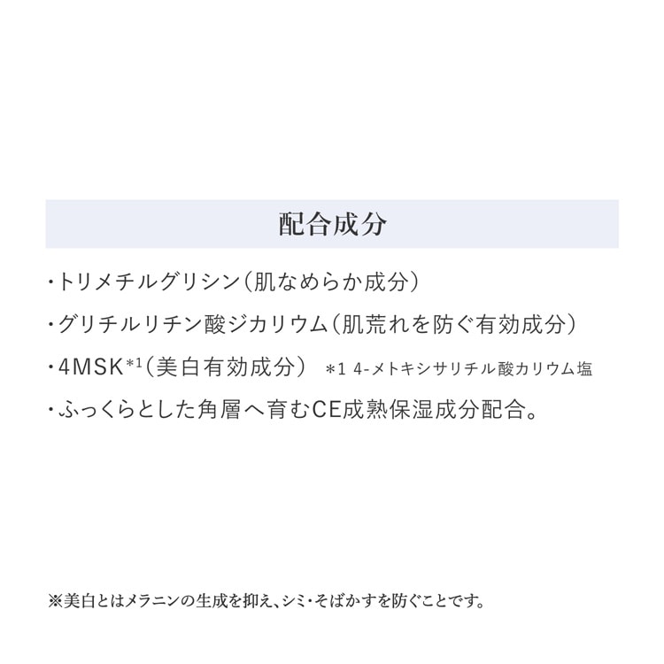 ●シミを防ぎながら*、うるおいに満ちた透明感も手に入れ、「美発光肌」で輝き続ける。