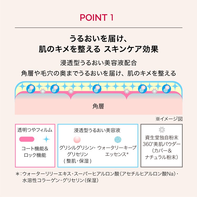 ●ひと塗りで、スキンケアしながら、1日中*フルカバーしてくずれない。