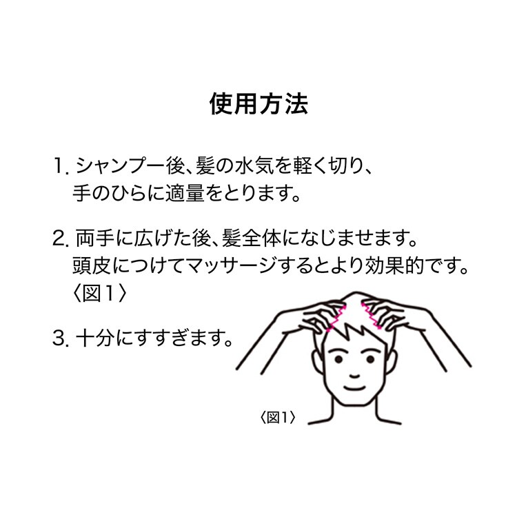 ・シャンプー後、マッサージをするように髪全体になじませてから、よくすすいでください。