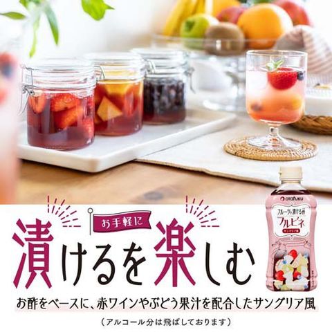 ●ぶどう果汁や赤ワインでサングリア風に仕上げた、フルーツを漬ける酢。