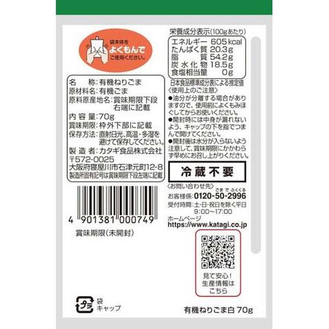 【カタギ食品 有機ねりごま白の商品詳細】